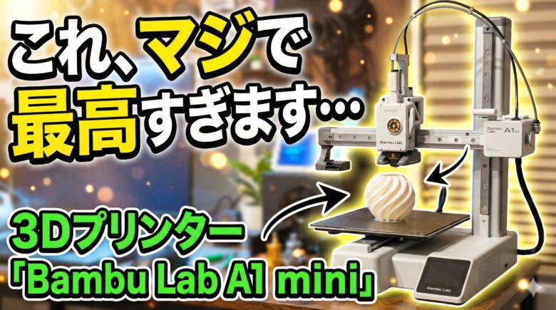 この記事は、今まで使ったことはないけど3Dプリンターに興味がある方の「何から始めれば?」という疑問や「失敗したらどうしよう」という不安を、実際に「Bambu Lab A1 mini」を買ってみて使った経験から少しでも解消できるよう写真付きで解説しています。