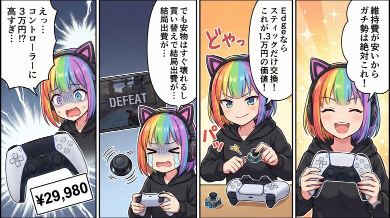 でも、あなたが「FPSで撃ち合いに勝ちたい」「スティックの故障に怯えたくない」と考えているなら、このDualSense Edgeは単なる贅沢品ではありません。「コントローラー=消耗品」という、これまでの常識を覆し、運用コストを劇的に下げるための最適解となります。