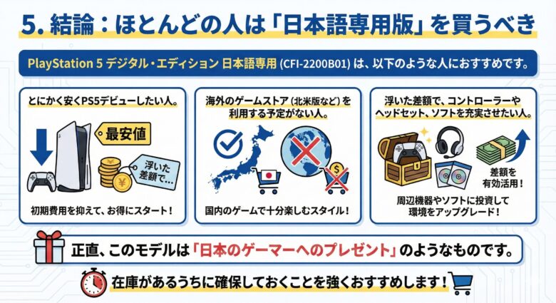 5. 結論:ほとんどの人は「日本語専用版」を買うべき