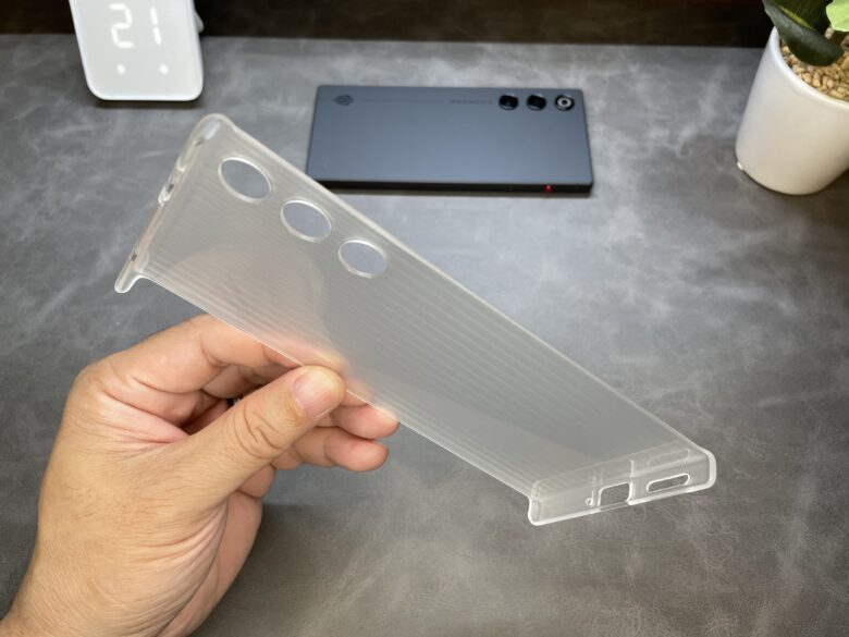 付属のケースはさすがにREDMAGIC10Airにピッタリの超薄型設計でLRトリガーに干渉しないデザインになっていて最高なんですが、とはいえ側面ががら空きなので保護力に不安があります。HITONORIは結局サードパーティ製のケースを選びました。